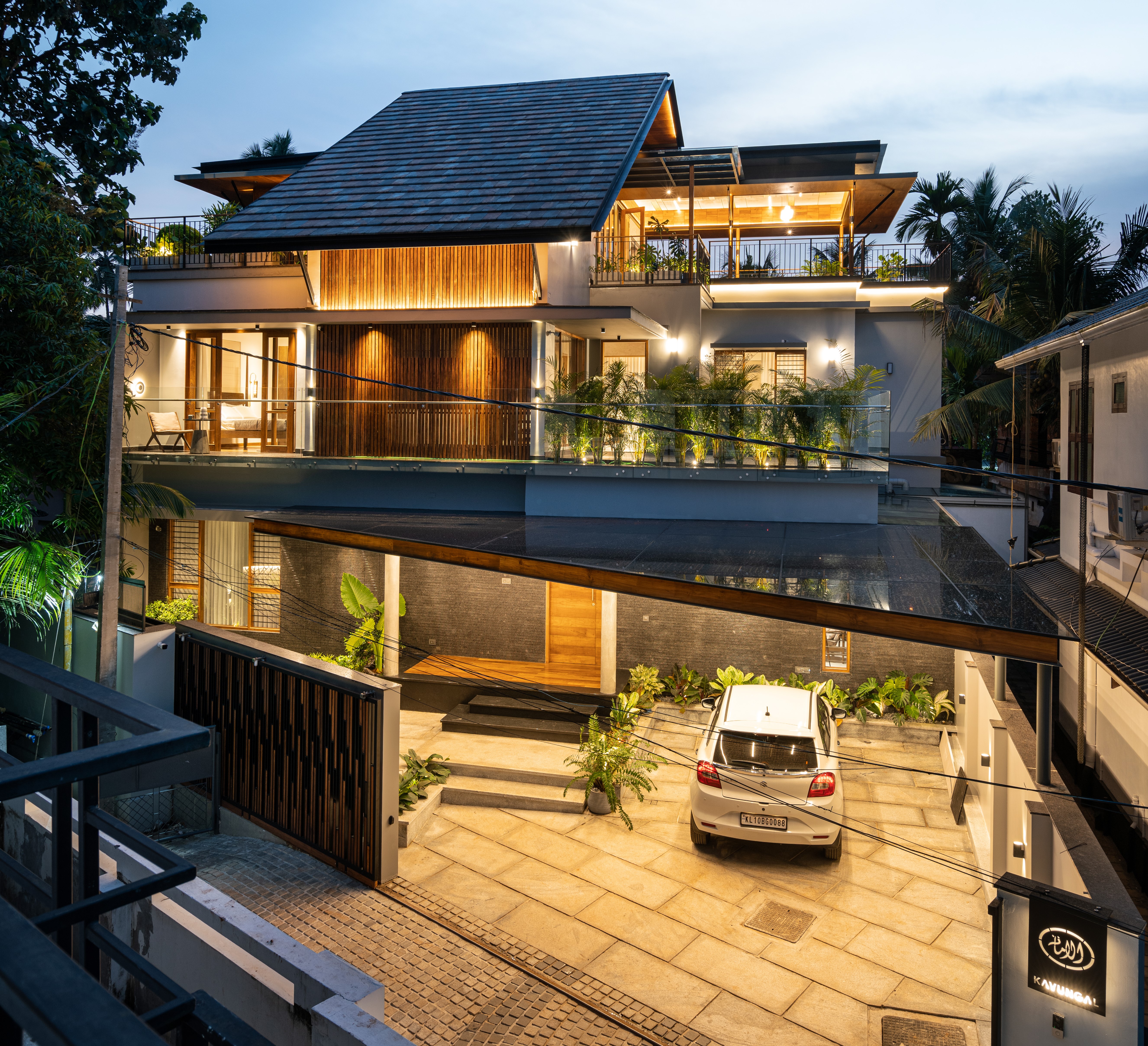 Set in Naduvattam, Calicut, Mr. Shaji's Kavungal House combines modern elegance with a touch of traditional charm. Thoughtfully designed to harmonize with its surroundings, this residence offers a serene retreat with contemporary amenities, capturing the essence of sophisticated, yet comfortable living.